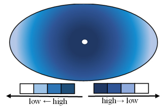 The experimental results showed that the injection pressure required for fault reactivation at a high pressurization rate was greater than that at a low pressurization rate and greater than that predicted by theory, possibly showing that the fluid pressure distribution on the fault was not uniform. Ji [37] reproduced the distribution of fluid pressure on the fault through numerical simulation. The results show that the closer it was to the borehole, the greater the fluid pressure, as shown in Figure 8. In addition, a high injection rate increased the degree of non-uniformity of the fluid pressure distribution, as the pressurized area at a high injection rate was significantly smaller than at a low injection rate before slip initiation. Therefore, under a high injection rate, the pressurized area expands continuously before slip starts, but the pressurized area is still much smaller than the fracture area. Because only a small part of the fault is in the pressurized area, higher local pressure is needed to propagate the slip front. As a result, when the pressurization was high, fault slip initiation required a higher injection pressure. However, when the injection rate was low, the pressurized area extended to almost the entire fault when the fault slip started.