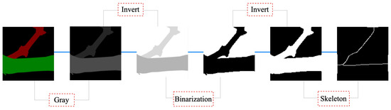 26] used Cascade Mask R-CNN to detect branches of apple trees and combined it with the Zhang–Suen thinning algorithm to obtain skeletons and connection points with trunk diameter information. In addition, You [