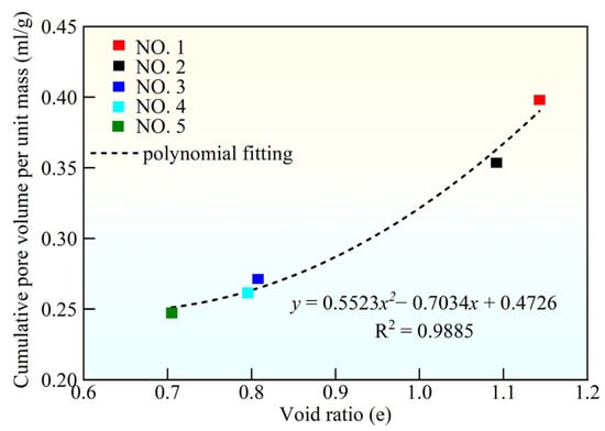 Relationship between cumulative pore volume and void ratio of loess samples.