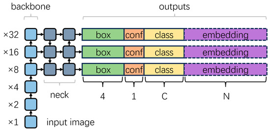 To empower YOLOv7 with the functionality to output an embedding reflective of the target’s state, we expanded the channel capacity of the output layer, which shown in Figure 2. This modification enables each grid cell to maintain its primary detection output while appending a state embedding vector. Consequently, each candidate target within the grid is represented by a comprehensive output ensemble that includes central coordinates, dimensions, a confidence score, class probabilities, and a state embedding vector. This state embedding vector, characterized by a predetermined length, encapsulates the salient attributes of the target’s state.