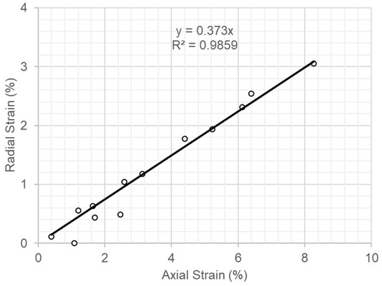 Radial strain versus axial strain in the ‘‘creep-stable state” in triaxial compression tests.