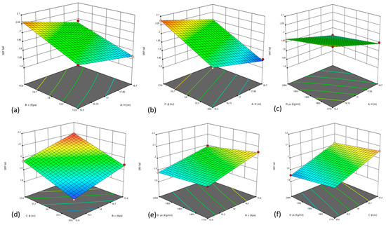 Three-dimensional response surface plots displaying the influence of all parameters on FWL coefficient.