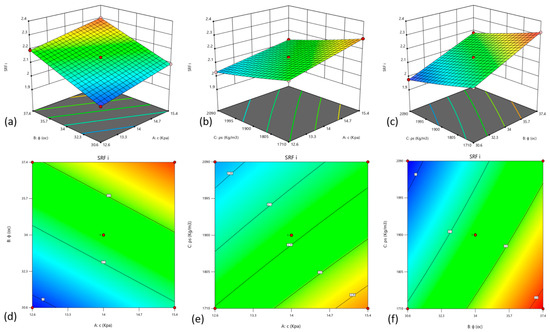 Two-dimensional and three-dimensional response surface plots displaying the influence of all parameters on RWL coefficient.