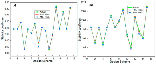 Numerous researchers have shown that design within response surface methodology (BBD-RSM) and artificial neural network (ANN) modeling for sensitivity analysis is effective [41,44,58]. This work shows forecast stability coefficients with varying water levels using BBD-RSM and ANN. To assess their predictions’ accuracy, the study compared predicted and actual data and calculated absolute relative error (ARE).