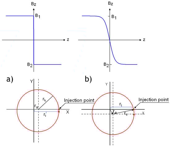- Rhee, M.J.; Destler, W.W. Relativistic electron dynamics in a cusped magnetic field. Phys. Fluids 1974, 17, 1574. [Google Scholar] [CrossRef]