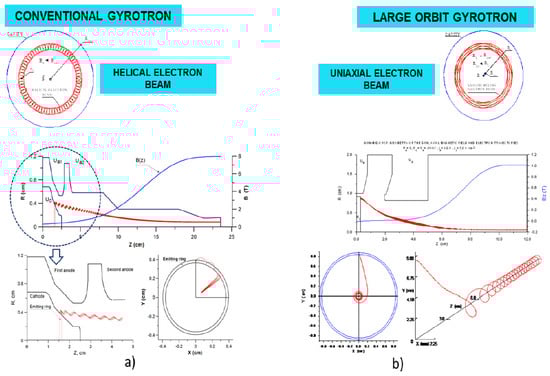 - Gol’denberg, G.A.L.; Petelin, M. The formation of helical electron beams in an adiabatic gun. Radiophys. Quantum Electron. 1973, 16, 106. [Google Scholar] [CrossRef]