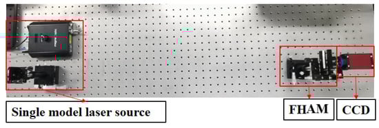 The specific experimental procedure is as follows. As shown in Figure 10, a single-mode laser source with wavelength of 635 nm is used to generate an approximately ideal spherical wave, and the FHAM-WS, composed of a microlens array and CCD, is placed 1 m away from the light source, which can be considered as an ideal plane wave incident, and the light spot diagram is collected. In this case, the true value of the measurement result of FHAM-WS should be zero, and the closer the actual measurement result is to zero, the smaller the measurement error. Firstly, the slope and curvature extraction algorithm of our research group is used to obtain the complete slope and curvature information of each sub-aperture from the spot pattern. After obtaining the complete mixed data of slope and curvature, the extracted data are processed twice to obtain the slope and curvature data matrix, which is suitable for wavefront reconstruction. Finally, the measured wavefront is reconstructed by using the hybrid slope and curvature algorithm. The experiment reduces random errors by averaging multiple measurements. Focal plane spot arrays are collected every minute, and this process is repeated 10 times. The ideal wavefront slope and curvature information matrices extracted by the experimental setup are reconstructed using the ZA and FA.