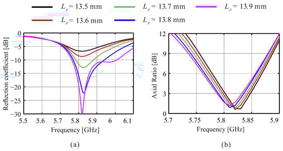 Parameter study of the unit cell for varying : (a) reflection coefficient, (b) AR.
