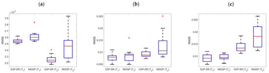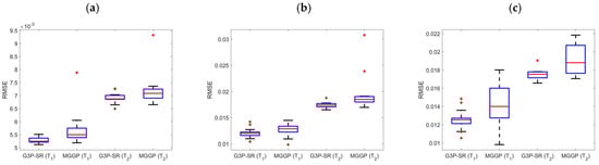 Boxplots of velocity RMSE from 15 runs: (a) 1-step-ahead prediction, (b) 10-step-ahead prediction, and (c) 20-step-ahead prediction.
