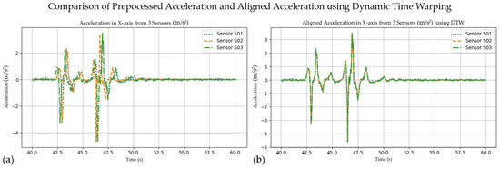 Achieving perfect time alignment of low-cost sensors is often unattainable. Nevertheless, the starting times provided by our proposed method serve as a valuable aid in the initial alignment. To overcome the challenge posed by imperfect temporal alignment, DTW is employed for time series alignment. The optimal warping path obtained through DTW can be regarded as the optimal temporal axis for point-wise alignment of the time series.