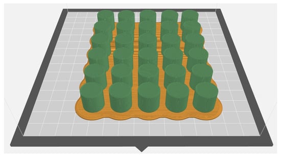 The samples were printed using a MakerBot Sketch printer (MakerBot, New York, NY, USA) [27]. The digital models of the samples were placed on the virtual platform of the MakerBot Sketch printer and printed during one printing cycle in the amount of 30 pieces. Table 2, below, presents the most important printing parameters set in the MakerBot Print program.