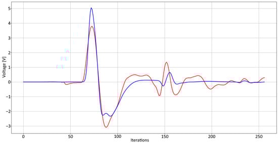 A comparison of the simulated result of the replicated GPR system (blue) and the real measurement (red).