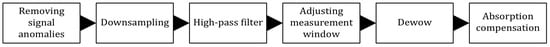 The so-called “wow” of the signal is a slow, wave-like signal component along the path axis of a recording which can arise, for example, from the inductive coupling of the antenna with the earth’s surface [15]. To remove these low-frequency signal components (dewow) along the path axis, a sliding average filter was also used. The filter length was chosen such that larger structures, which could originate from buried objects, would remain visible.