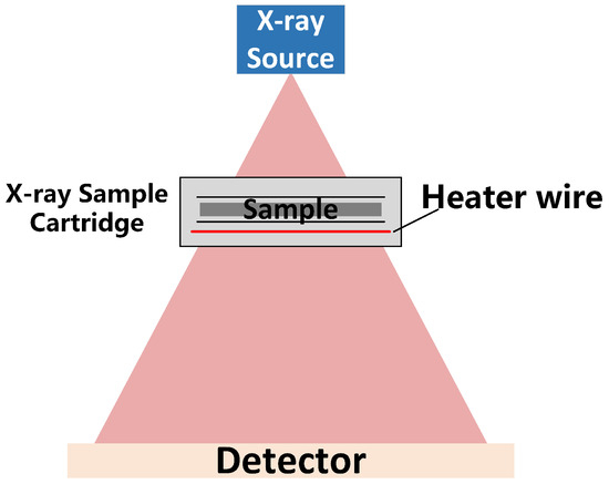 The X-ray sample box unit consists of a sample unit for placing the sample, a heating unit, an insulation unit, and a seal between the lid and the box [17]. The X-ray Sample Cartridge is mainly composed of a top cover plate and a bottom plate with a transparent rectangular window to facilitate the observation of experimental phenomena (Figure 3a).