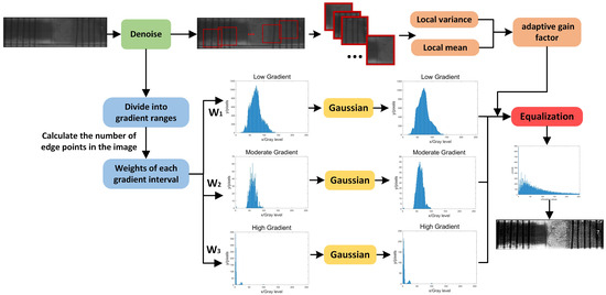 In order to enhance the contrast of X-ray images in melting and solidification experiments of high-temperature materials, this paper proposes the GTIE-IACE. This algorithm aims to improve overall image contrast and enhance local detail definition. The flowchart of the GTIE-IACE algorithm is shown in Figure 7.