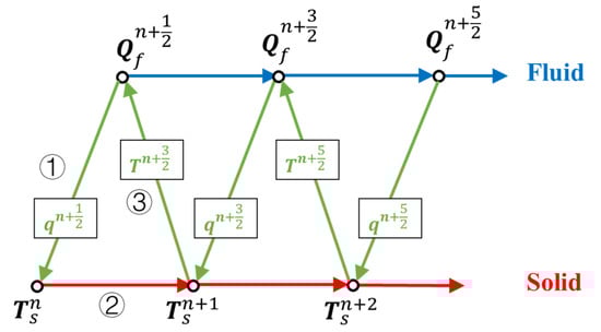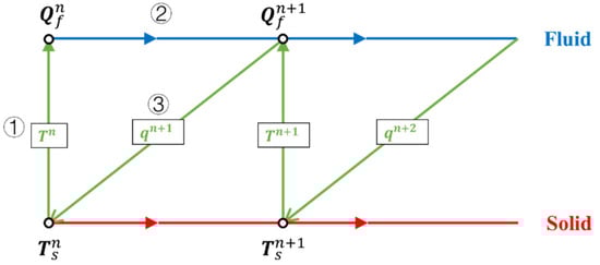 In addressing the concerns related to temporal precision, certain researchers have advocated for the redistribution of physical parameters within each iterative time increment t + Δt to enhance the time resolution of CSS methodologies [,]. Nonetheless, Alonso [] cautioned that marked disparities in time scales impose limitations on the frequency of data interchange across distinct physical domains, and these maneuvers may correspondingly amplify computational workloads.