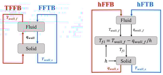 Conversely, implementing heat flux as the boundary condition enhances stability. In light of these findings, Scholl et al. [] introduced the heat transfer coefficient Forward Flux Back (hFFB) method as an innovative alternative. This methodology imposes heat flow boundary conditions on the fluid domain, leading to a demonstrably stable and more rapid convergence in comparison to its predecessors.