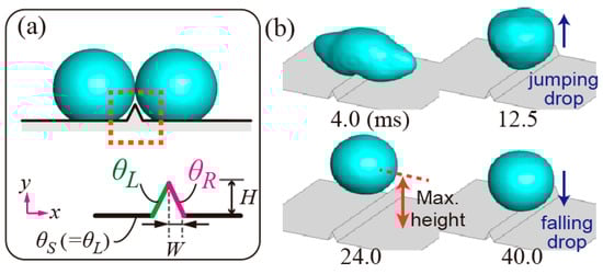 7]. Many researchers have investigated the mechanism and applicability of droplet jumping, developing applied technologies by introducing various factors such as droplet–solid interactions and various surface structures [