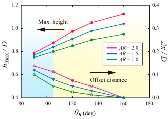 AR = 1.0), a 21% decrease in height is predicted. Conversely, as asymmetry increases, the offset distance generally increases. For instance, compared to weak asymmetry, with