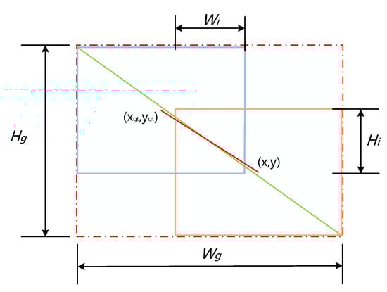 The IoU schematic diagram for the WIoU bounding box loss function is illustrated in Figure 8. The predicted box is represented by , while the ground truth box is represented by .