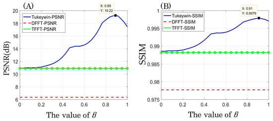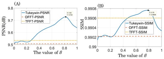 As mentioned earlier, the two simulations should have had different values of due to the different complexities of the objects. That is to say, in practice, D-FFT (Tukey) must choose an appropriate value according to the diffractive plane, to obtain the best results. can be determined with the help of the peak signal-to-noise ratio (PSNR) and the structural similarity (SSIM).