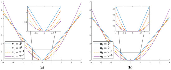 Without loss of generality, can be chosen as , which results in the standardized PHS density functions described in [49], to take advantage of tuning only one parameter. Benefiting from this research, instead of tuning two parameters and , it is reduced to tune only one parameter which continues to cover the Vapnik’s and -insensitive losses for the limit values such that