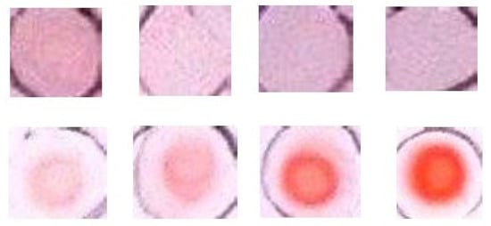 To study the effect of light and shadows, images of the plates were captured in and outside of an enclosure. For the first experiment, the plates were photographed in an enclosed box (13 × 11 × 20 cm) using the smartphone. An incision was made on one surface of the box through which the smartphone camera lens captured the plates. The pictures were captured with the flashlight on. For the second experiment, the image was captured while outside an enclosure and just on a desktop. Images were captured using both photography and scanning with the smartphone. The images were then uploaded for image processing. This is similar to other studies of smartphone-assisted detections [41,42].