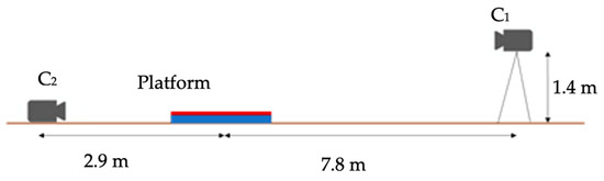 For both platforms, jumps were counted whenever their landings coincided with the zone corresponding to the load platform. The jumps and respective landings were filmed using two video cameras, one Sony (camera C1) and one Canon (camera C2), each with an acquisition frequency of 100 Hz (Figure 6).
