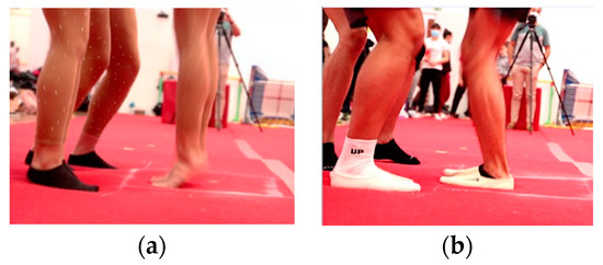 Foot position on the landing of the gymnasts: (a) forefoot; and (b) midfoot.