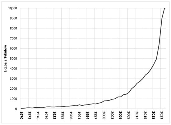 One of the first applications of computer modelling to estimate groundwater flow dates back to the 1960s when Remson, together with Appel and Webster, proposed the use of finite differences and digital computers to track water flow [], but very few involved hydrocarbon seeps. Since the 1970s, however, the number of journal articles describing models for the transport of hydrocarbons in water has increased (Figure 1), with an abrupt increase in recent years. There have been several breakthroughs in knowledge during these decades, e.g., the involvement of microorganisms in oil spills was described in detail as early as the 1970s [], and in the same year a fundamental theoretical concept of the chemical and biological processes associated with the presence of hydrocarbons in soil and groundwater was formulated []. The theoretical and numerical definition and realisation of multiphase transport of hydrocarbons can also be regarded as a fundamental advance in knowledge in the 1980s [,].