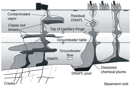 The forces that drive DNAPL movement are in turn dependent on the density and viscosity of the DNAPLs (Figure 4), the permeability of the aquifer, i.e., the heterogeneity, the groundwater velocity, and the DNAPL saturation and distribution [].