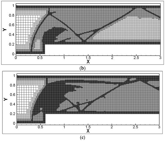 - In the context of supersonic flow over a forward facing step, employing a comprehensive criterion based on velocity, vorticity, and divergence enhanced the capture of flow field characteristics. AMR achieved comparable flow field results to uniform grids, while judicious grid coarsening and refinement reduced computational costs without compromising simulation accuracy. With solution adaptation across three layers, grid count and overall computational cost decreased to 48.9% and 47.6%, respectively, compared to uniform fine grids. Increasing adaptation layers to five further reduced these ratios to 15.8% and 19.5%, respectively.