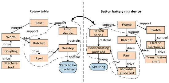 Contents related to the structure include (1) subsystems and components, as shown in Table 4. A complete technical system can be roughly divided into the energy subsystem, transmission subsystem, execution subsystem, and control subsystem according to functions undertaken by internal components. (2) The connection relationship, that is, the individual collection of the class ‘Link’, represents the connection mode between structures. Common connection relationships include threaded connections, flange connections, pin connections, and so on.