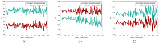 Error correction effect. (a) x-axis error; (b) y-axis error; (c) z-axis error.