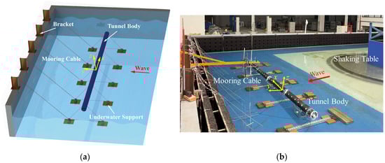 22] adopted an aluminum tube model anchored in a static water channel to research the impact of local cable failures. The rigid model cannot reflect the elastic deformation of the tunnel body, so it cannot accurately simulate the dynamic characteristics of SFTs.