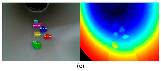 - A Mask R-CNN-based system is developed to identify the stones and measure their distances from the robot in the underground pipeline.