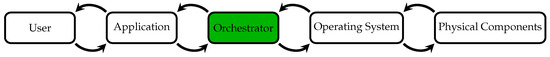 The orchestrator allows hardware and software intercommunication.