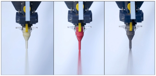 Example of a sprayer end effector. Source: https://www.researchgate.net/publication/313497501/figure/fig18/AS:614364813983767@1523487394998/Variable-color-output-from-the-foam-spray-end-effector-is-seen.png, accessed on 25 April 2024.
