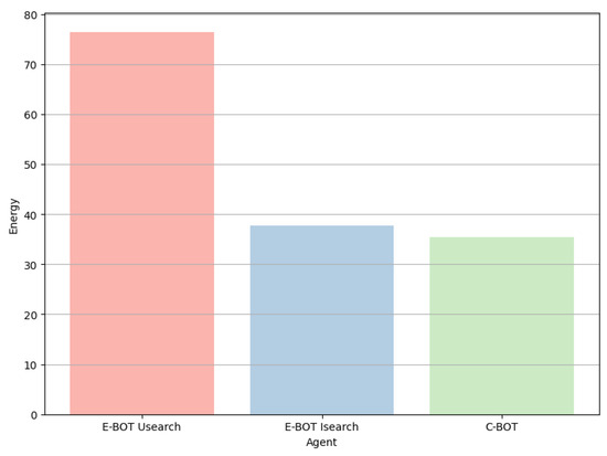 An analysis of the relationship between the energy consumption of the agents and the state of the enemy agent’s view sensor is presented in Figure 9. There is no doubt that agents operating in an environment where the view sensor is disabled consume less energy than those operating in environments where the view sensor is enabled. This finding illustrates how the ability to evade visual detection can affect the efficiency with which agents use their energy resources.