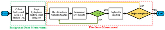In the experiment, the flow noise signal was recorded by hydrophones and subsequently collected by data acquisition cards. These signals were then converted into a digital format within the acquisition card before being stored on the PC. To ensure accuracy and mitigate potential errors, multiple measurements were performed during the experiment, as illustrated in Figure 10.