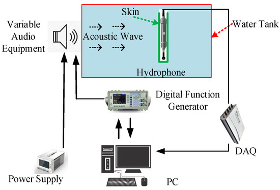 In this experiment, different hydrophone sensitivities are measured by replacing the cylindrical shell with smooth skin, riblet skin, and placoid-scale skin, respectively. The sensitivity measurement experiment was conducted at Zhejiang University, with sketches and some physical objects depicted in Figure 15.