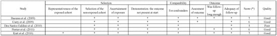 Newcastle–Ottawa (* = is considered).