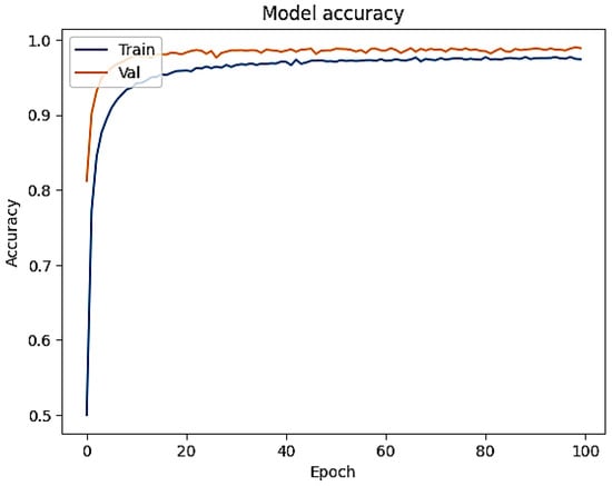 A comparison of the experiment training and validation accuracies is presented in Figure 5. The fact that both values are nearly equal to each other suggests that the model fits the data well and exhibits neither overfitting nor underfitting.