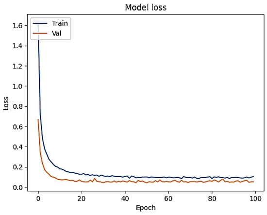 After that, the training and validation losses for the proposed LE-CNN model with different epochs were computed and are displayed in Figure 6. The fact that both values are convergent towards zero suggests that there is no overfitting or underfitting in the model. This also shows how well the model can be used as a predictive tool in general.