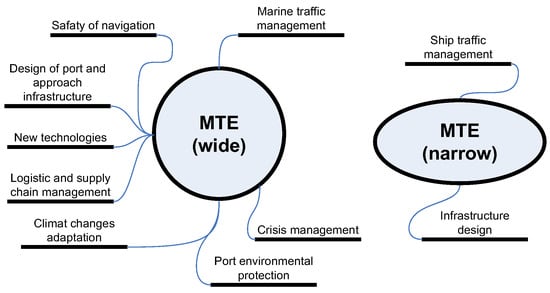 These lines of research are essential in developing and maintaining sustainable, safe and efficient shipping operations around the world. As technology advances and the global environment changes, marine traffic engineering will continue to evolve to meet the new challenges and needs of the maritime industry. Figure 1 shows the broad and narrow definition of MTE.