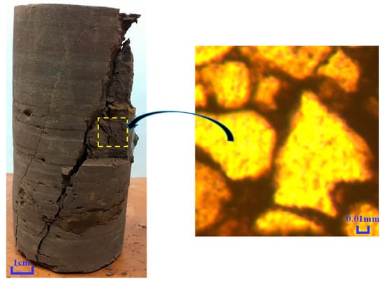 In recent years, numerous studies have investigated the effects of water on the mechanical responses of rocks. The water-induced weakening analysis mainly focuses on the influence of water content, immersion time, and wetting–drying cycles on rock strength. Many studies have shown that the mechanical parameters (compressive, tensile, shear strength, and Young’s modulus) of rocks weaken with increasing water content, especially mudstone [5,6,7]. In addition, the water content can reduce the crack toughness [8]. Compared with water content, the relationship between the immersion time and the actual field situation is closer. The immersion time can significantly affect rock strength since the deep surrounding rock masses are immersed in water for months [9]. For wetting–drying cycles (WDC), it was found that the first several WDC significantly affect the strength of rocks, but there was no change in the following cycles [10,11]. In essence, natural rocks are heterogeneous, and the macroscopic failure behavior and mechanical properties of rock materials under water–rock interactions are closely related to the types of minerals (e.g., minerals with different shapes, sizes, and mechanical properties) and microstructures (e.g., pores, mineral particle skeleton, etc.) [12,13,14]. The softening mechanism of water on rocks is complex, and many scholars have studied different issues using various techniques. Jiang et al. [15] investigated the evolution law of micro-fractures in mudstone during the water–rock interaction process based on CT scanning. Zhang et al. [16] studied the evolution characteristics of microstructures of red bed mudstone and sandstone under rainwater infiltration based on XRD and SEM, and found that the contact relationship of clay mineral particles changed from face-to-face to edge-to-edge and edge-to-face contact, leading to the loosening and porosity of the micro-structure. Ciantia et al. [17,18] proposed the concepts of diagenetic bonding (DG) and depositional bonding (DP) that support the macroscopic stability of rocks in order to study the impact of water on the macroscopic mechanical properties based on the polarizing microscope thin sections. However, obtaining and preparing rock samples for experiments and conducting experiments are redundant, and the microstructure of each rock sample is different, so the results of laboratory tests are almost irreproducible.