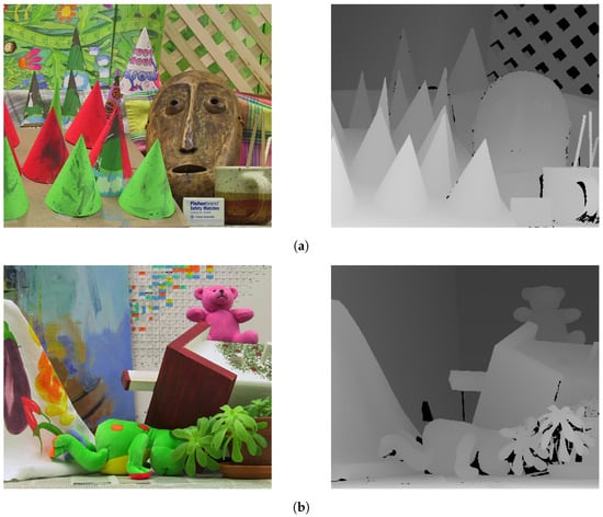 To evaluate the performance and robustness of the proposed algorithm, experiments were conducted using stereo image pairs from the Middlebury dataset [32], as shown in Figure 8. One of the key evaluation metrics is the mismatch rate, which is defined as: