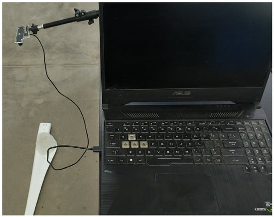 The experiment utilized the HBVCAM-4M2214HD-2 V11 model binocular stereo vision camera (Huiber Vision Technology Co., Ltd., Shenzhen, China), with its detailed specifications provided in Table 4. This camera satisfies general depth perception requirements and is suitable for target detection and depth measurement. The camera was mounted on an adjustable-height tripod and positioned at a distance of 0.8–0.9 m from the experimental sample to ensure optimal depth measurement accuracy. The camera angle was adjusted to be nearly perpendicular to the surface of the sample to optimize imaging quality. The spatial layout of the experimental setup and the data acquisition system is shown in Figure 9.