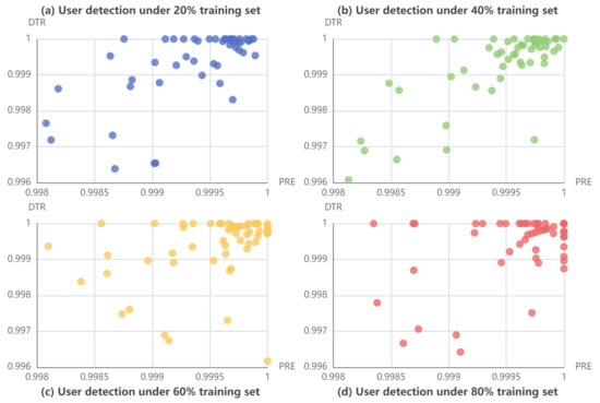 The reason for using the random forest algorithm is that in the random forest model, each decision tree is obtained based on random sampling, which can reduce the risk of oversampling and improve the generalization ability of the model. In addition, the random forest model can evaluate the importance of features and automatically identify features that have a significant impact on anomalous user behavior representation. After trying various machine learning algorithms, we found that random forest outperforms other classifications and achieves the best performance in user anomaly detection tasks. Therefore, in this study, random forest was adopted as the classification algorithm for anomaly detection.