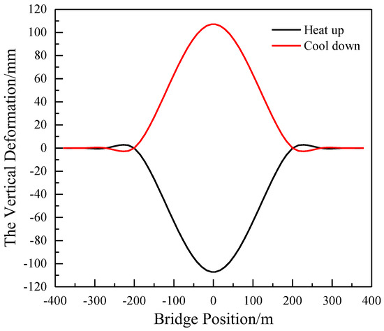 Figure 8 illustrates the vertical deformation of the main span 400 m cable-stayed bridge deck. The